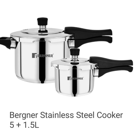 Bergner Pura Stainless Steel Cooker With Triply Bottom Combi Pack