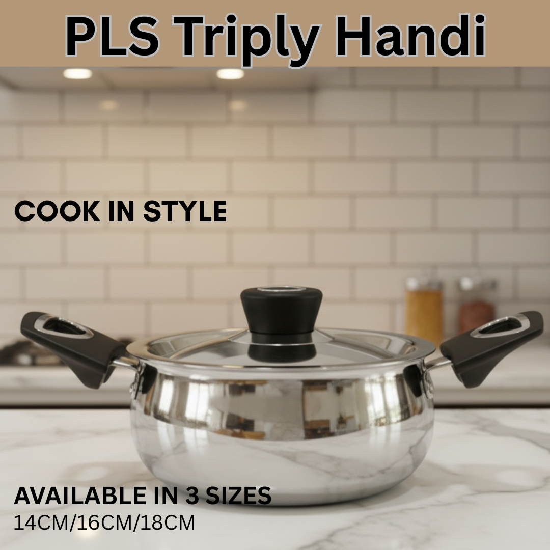 Whether you’re cooking daily meals or festive dishes, the PLS Triply Handi With Handle gives you professional results every time!